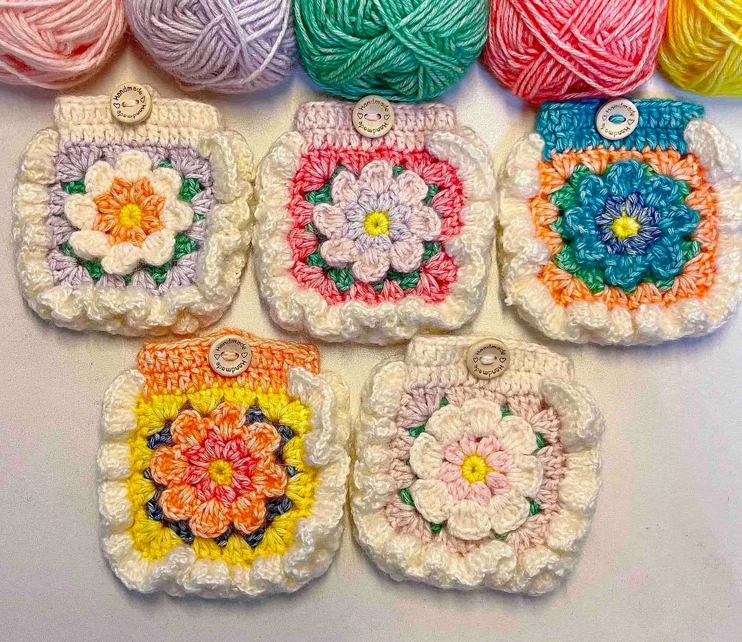 Lulusnow Handmade  3D Flower Granny Square Crochet Coin Purse Crochet Mini Bag Gift for Her/Friend/Kids