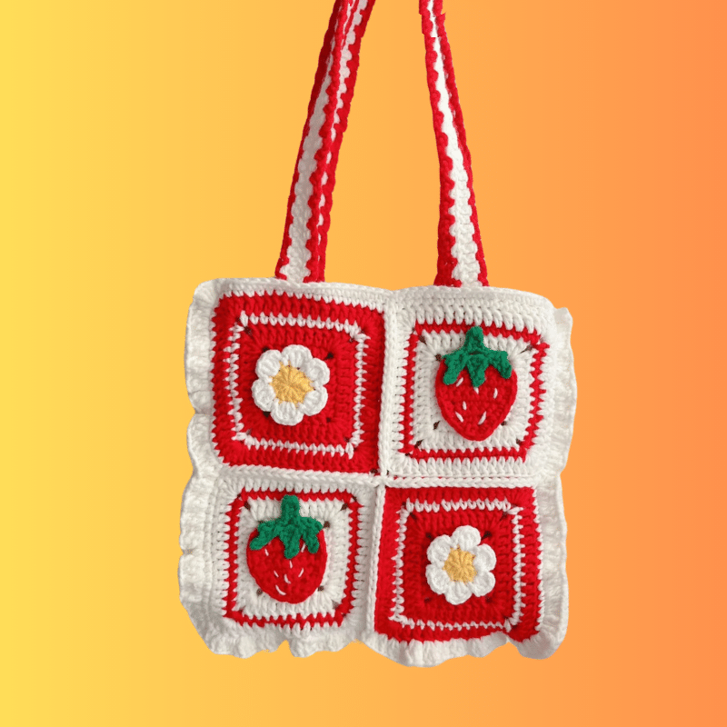 Lulusnow Handmade 3D Strawberry Crochet Bag