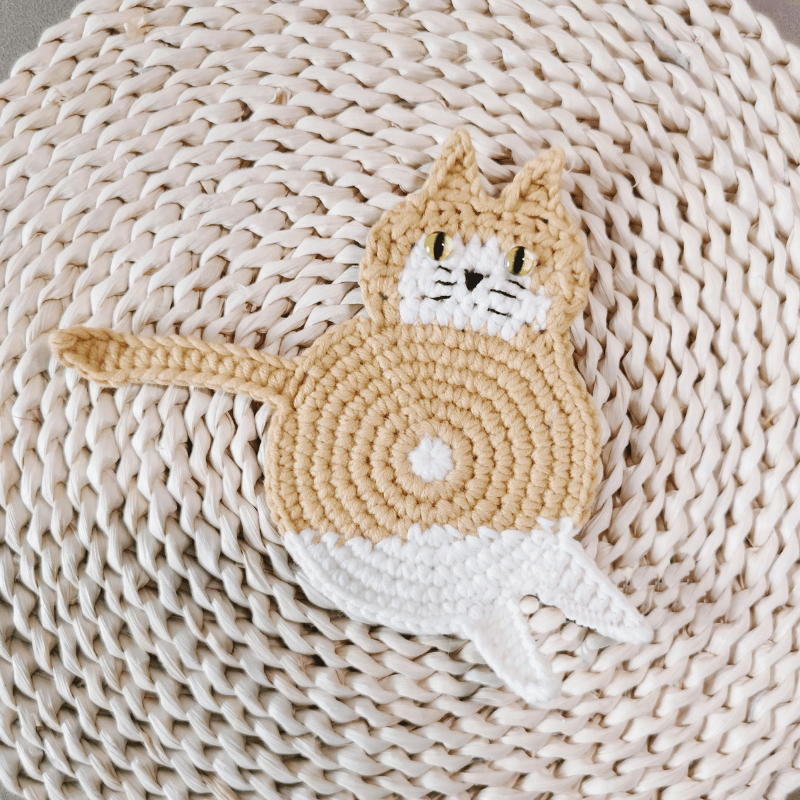 Lulusnow Handmade Beige Cat Crochet Coasters