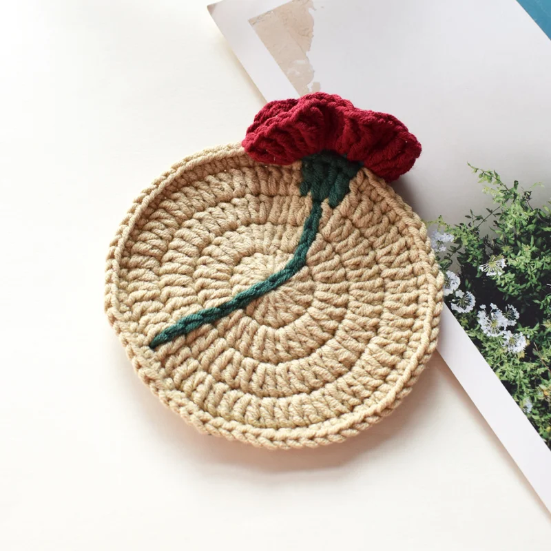 Lulusnow Handmade Beige Rose Crochet Coasters