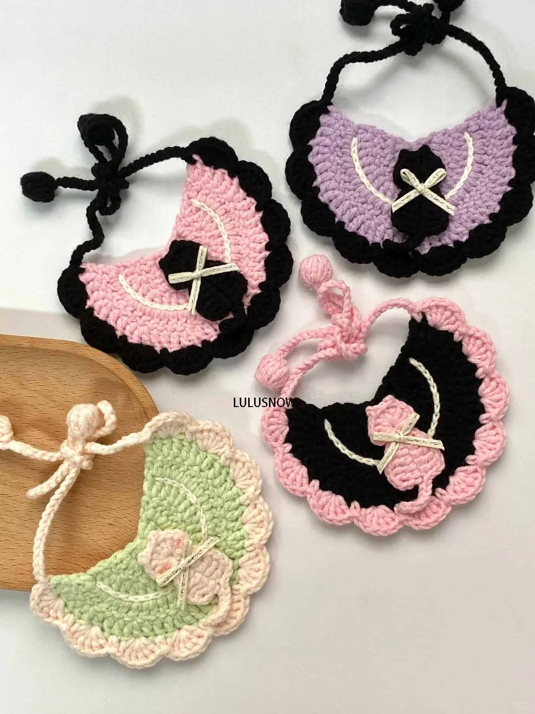 Lulusnow Handmade Black Cat Figure Crochet Pet Collars/ Pet Holiday Outfit/ Festive Pet Accessories/ Gift For Pet