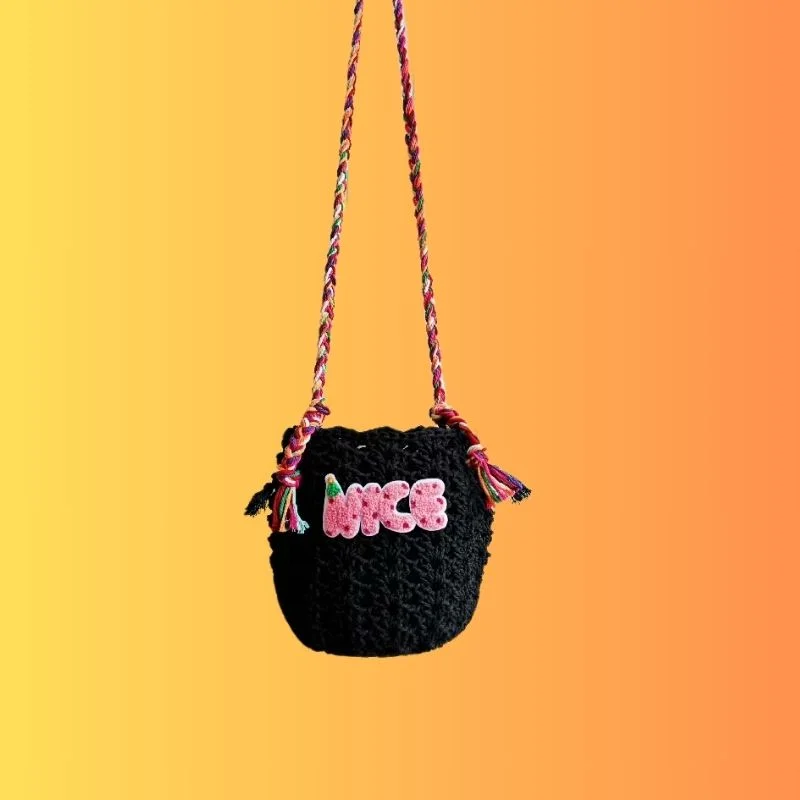 Lulusnow Handmade Black NICE Minimalist Lifestyle Crochet Crossbody Bag