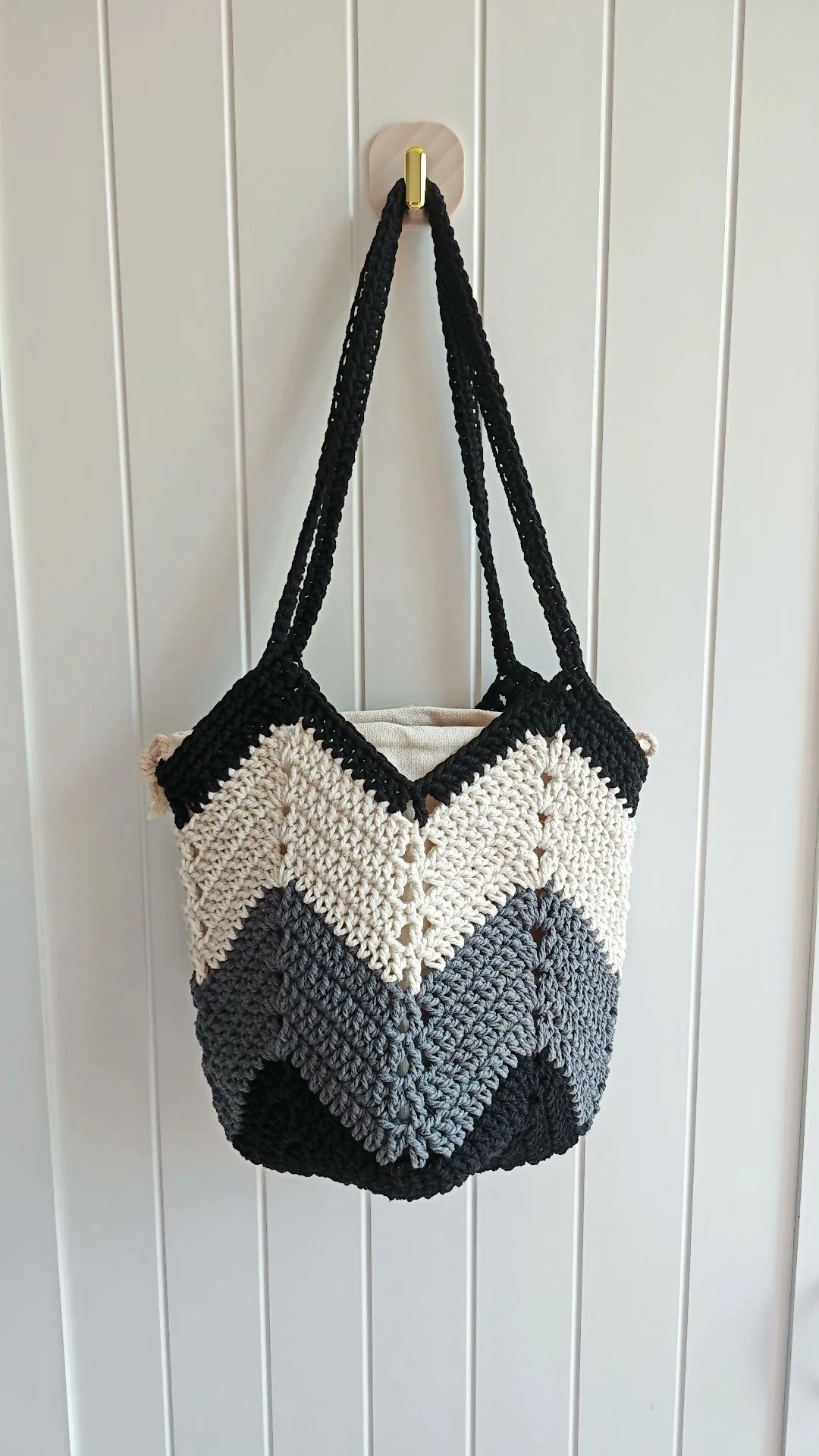 Lulusnow Handmade Black White Classic Striped Patterns Beach Summer Bag Crochet Shoulder Bag Minimalist Lifestyle