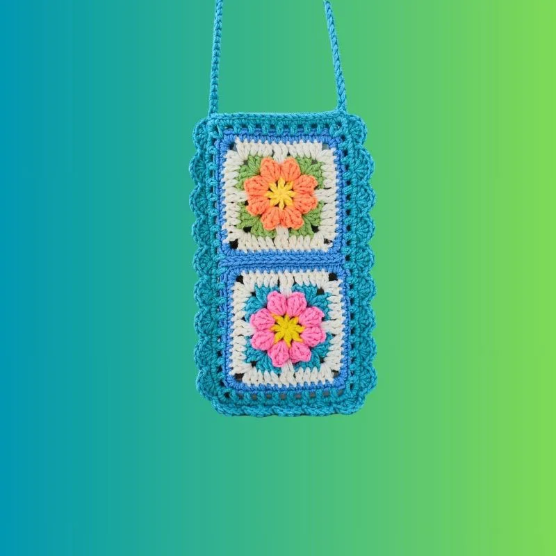 This phone bag is meticulously handmade using premium wool yarn and traditional crochet techniques. Every detail showcases the classic beauty of the granny square pattern, complemented by the elegant yet fashionable combination of blue and white, suitable for various styles and occasions.