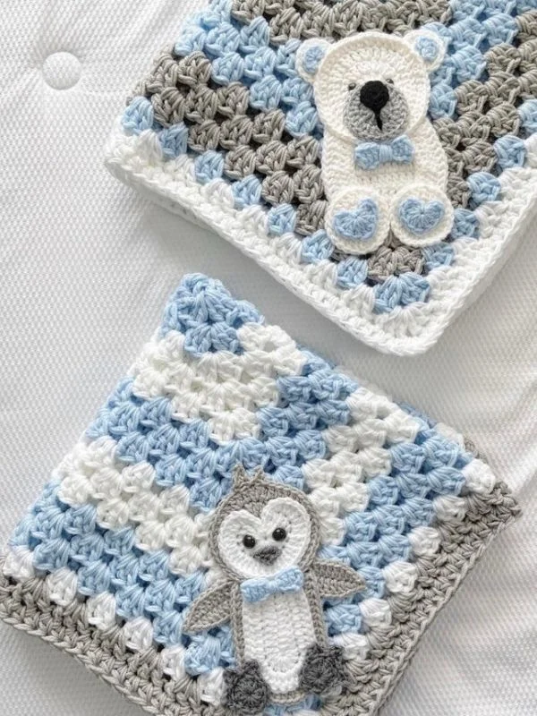 Lulusnow Handmade Blue Penguin Blanket Bear Blanket Crochet Animal Baby Blanket Gifts For Baby