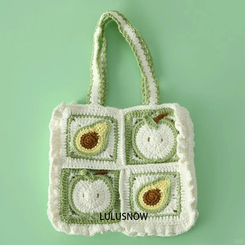 Lulusnow Handmade Green 3D Apple Avocado St.Patrick Gift Crochet Shoulder Bag