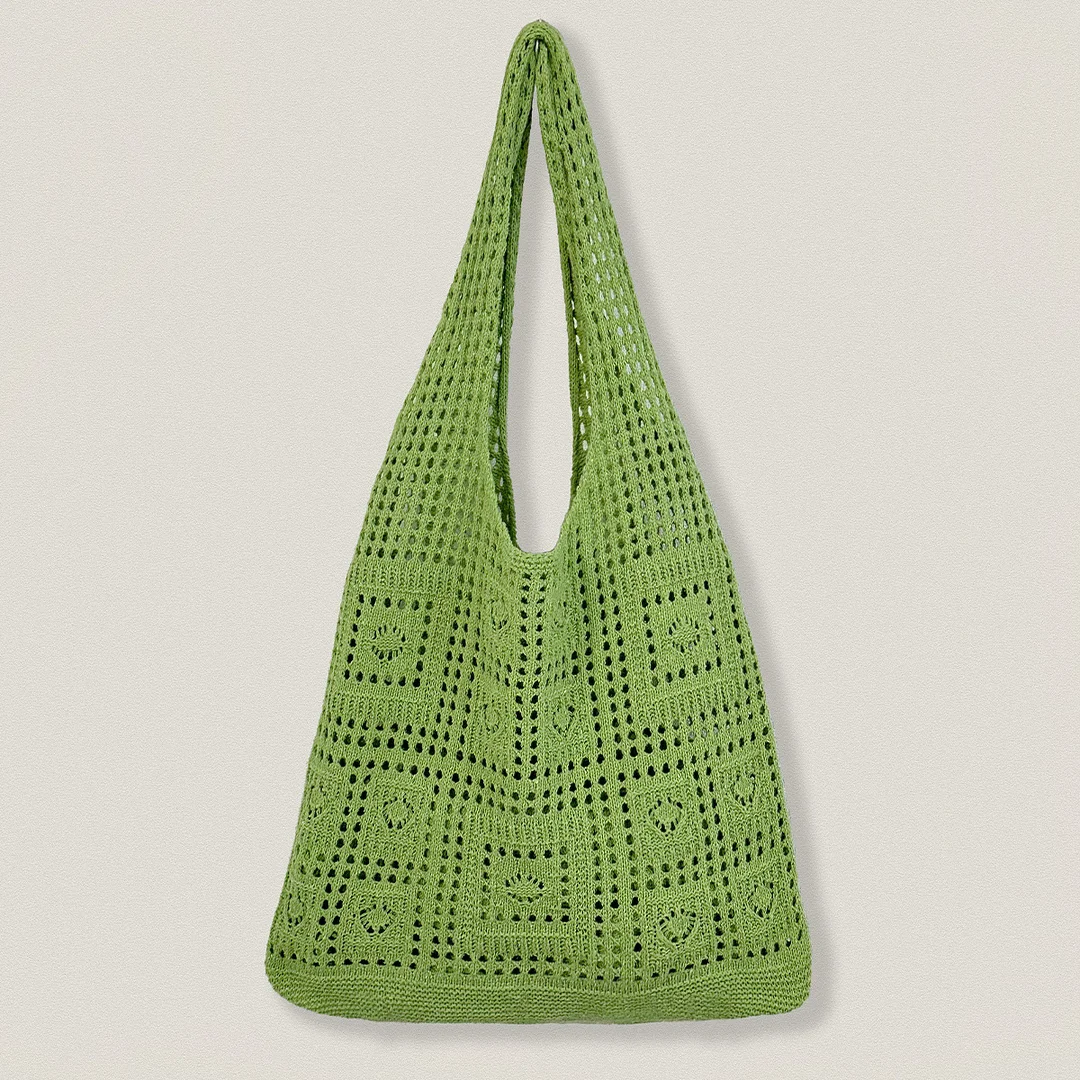 Lulusnow Handmade Green Beach Summer Bag Vintage Foldable Handbag for Travel Crochet Shoulder Bag Minimalist Lifestyle