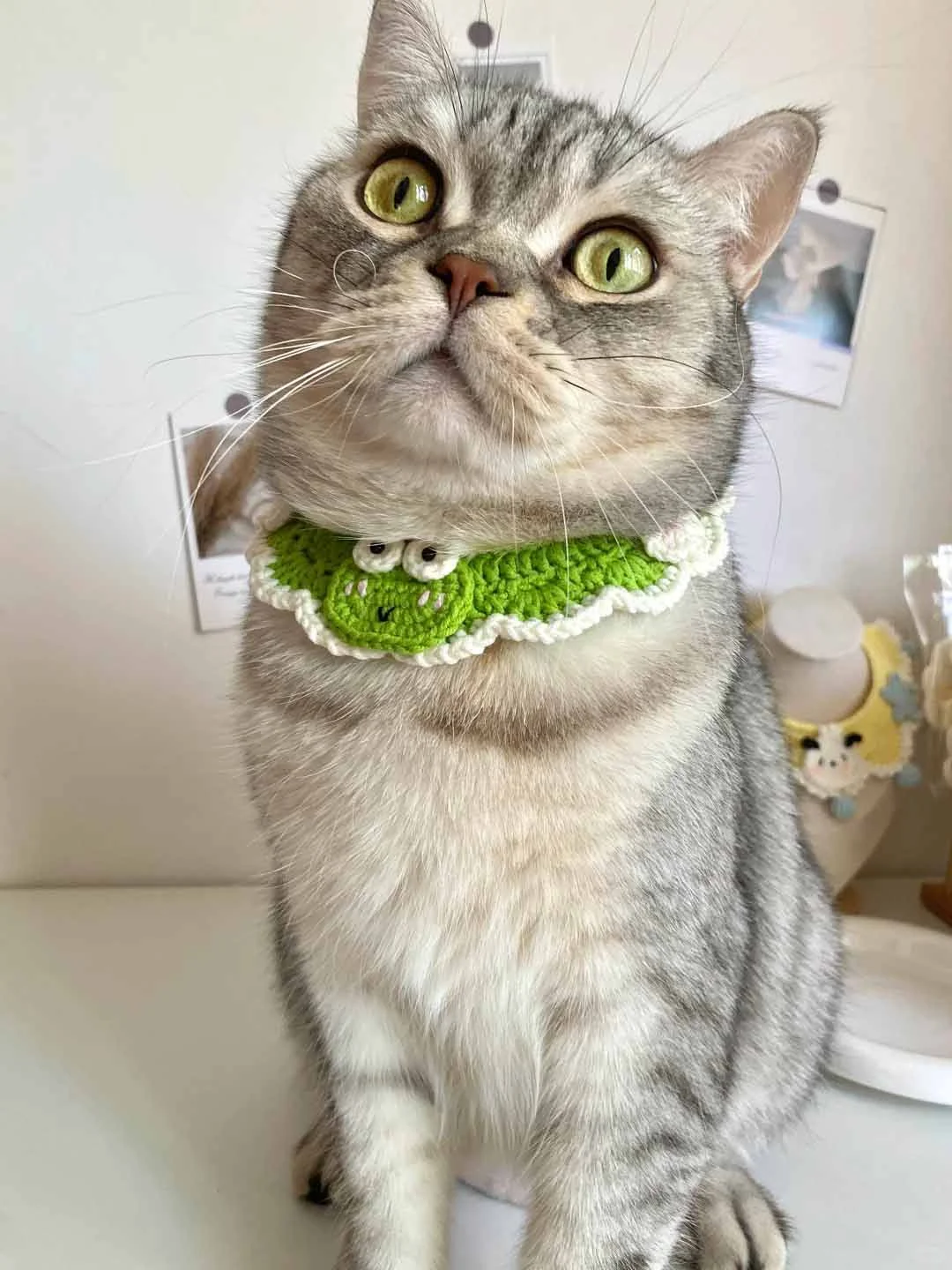 Lulusnow Handmade Green Frog Crochet Pet Collars/ Pet Holiday Outfit/ Festive Pet Accessories/ Gift For Pet