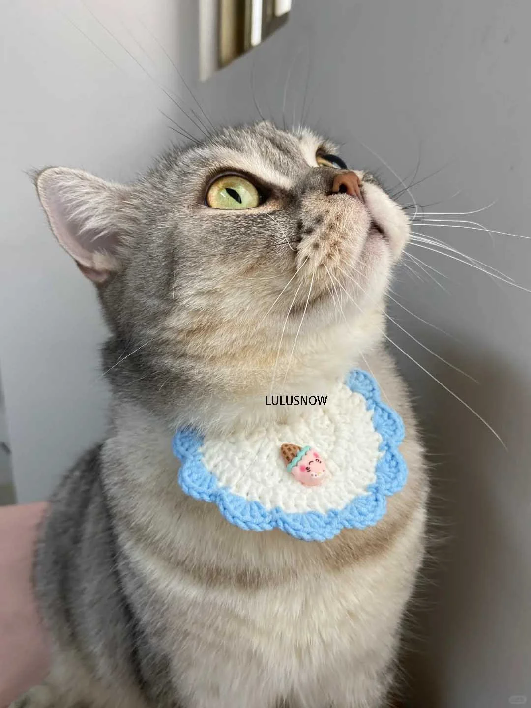 Lulusnow Handmade Ice Cream Crochet Pet Collars/ Pet Holiday Outfit/ Festive Pet Accessories/ Gift For Pet