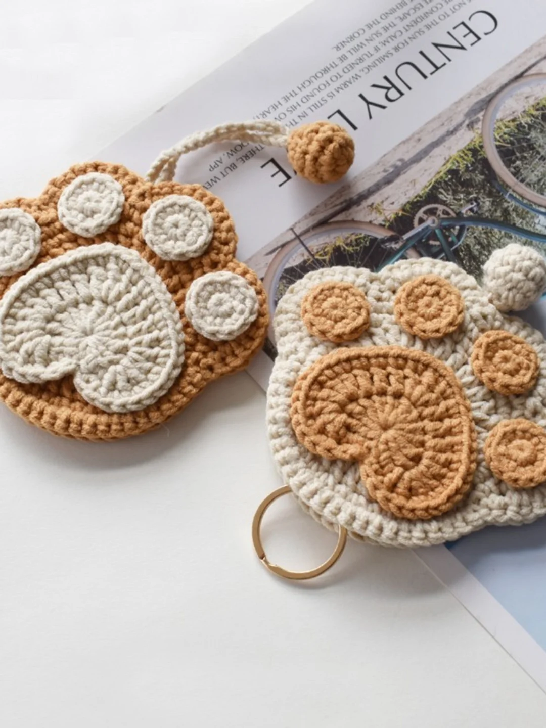 Lulusnow Handmade Khaki Cat Paw Crochet Key Cover Gift for Her/Friend/Kids