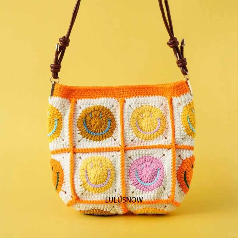 Lulusnow Handmade Light Orange Classic Smiley Faces Small Shoulder Bag Crochet Crossbody Bag