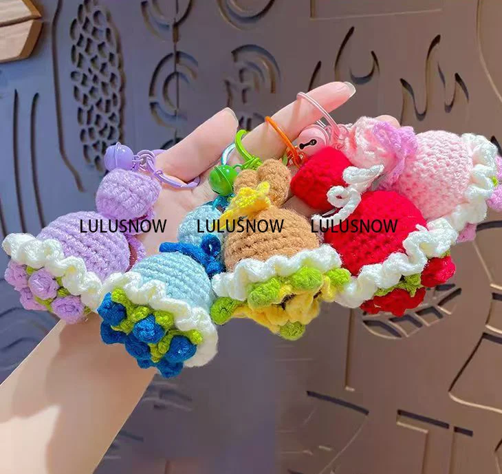 Lulusnow Handmade  MINI Flowers Bouquet Gift Christmas/Valentine's/Easter/Mother Day Gift Crochet Key Chain Bag Accessories Decorations