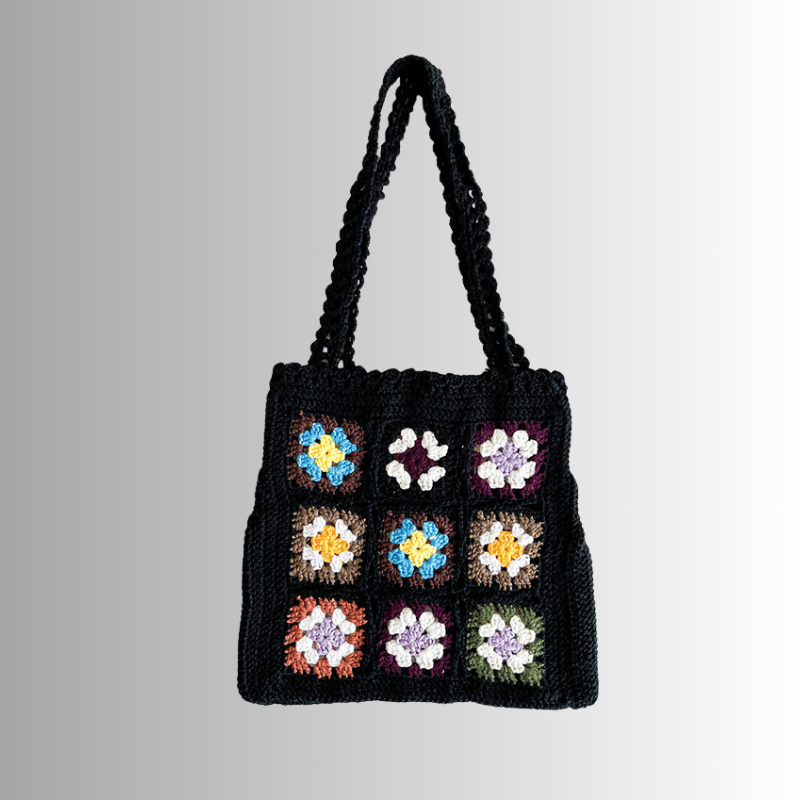 Lulusnow Handmade Multicolor Classic Granny Square Casual Travel Beach Crochet Shoulder Bag