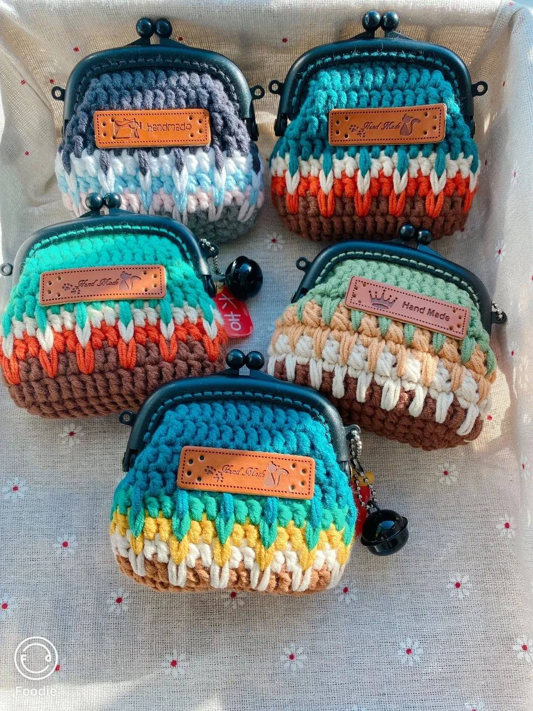 Lulusnow Handmade Multicolor Summer Rainbow Small Money Pouch Crochet Mini Bag