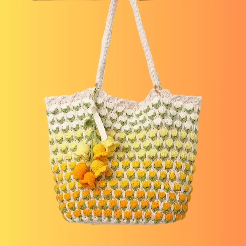 Lulusnow Handmade Multicolor Yellow Tulip Bag Crochet Shoulder Bag Crochet Handbag  Gift For Her/Christmas/Valentine's/Easter/Mother Day