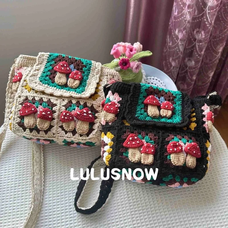 Lulusnow Handmade Mushroom Granny Square Crochet Crossbody Bag Gift for Naturelover Mother's Day Gifts