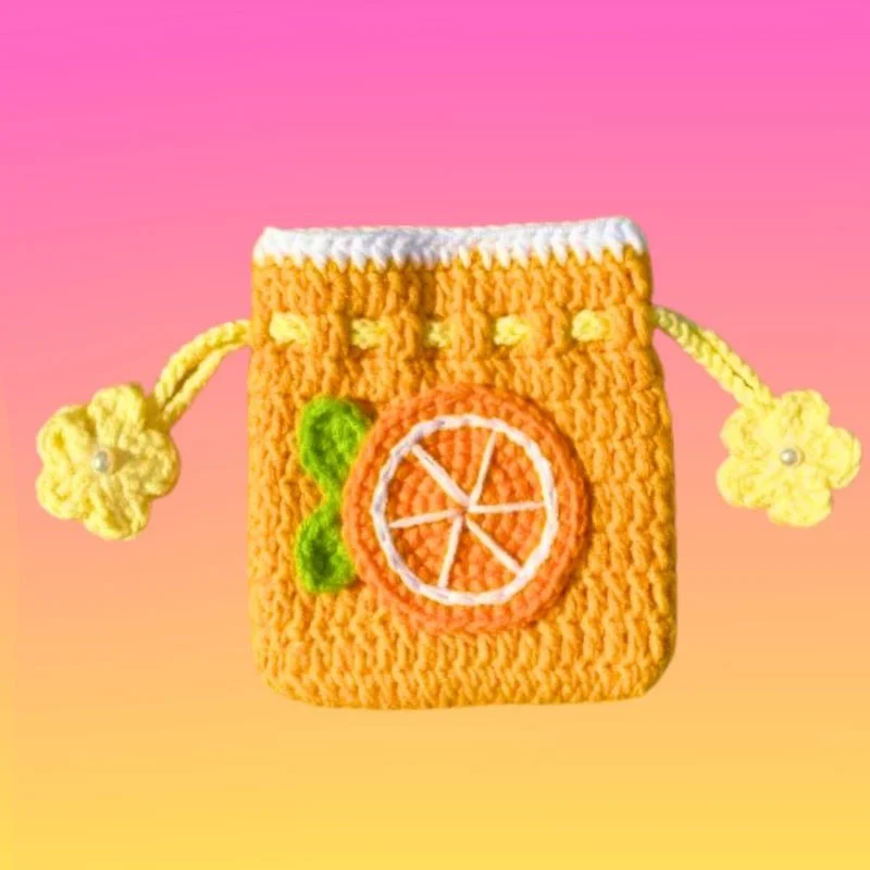 Lulusnow Handmade Orange Small Money Pouch Crochet Mini Drawstring Bag