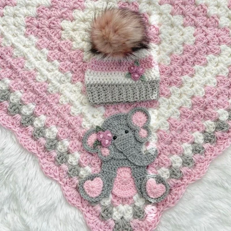 Lulusnow Handmade Pink Baby Elephant Crochet Animal Baby Blanket Gifts For Baby