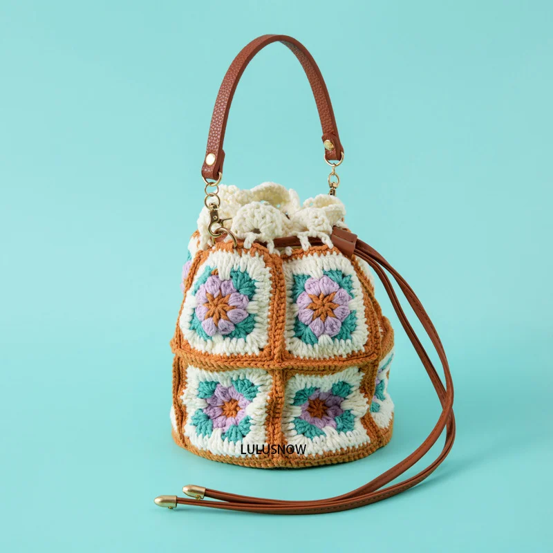 Lulusnow Handmade Pruple Granny Square Bucket Bag Gift Christmas/Valentine's/Easter Crochet Hand Bag