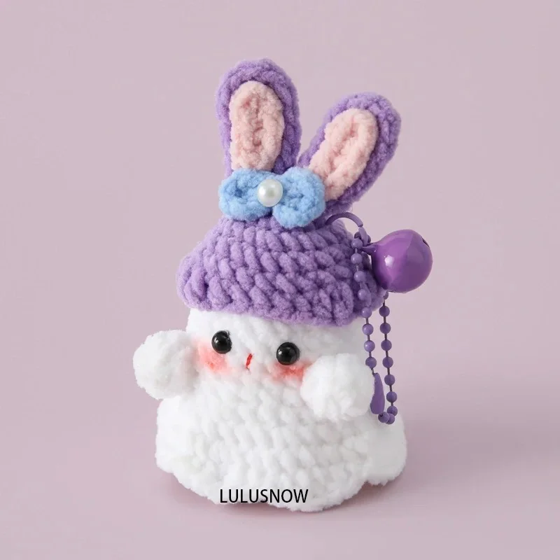 Lulusnow Handmade Purple Halloween Amigurumi Ghost Rabbit Hat Crochet Key Chain Bag Accessories