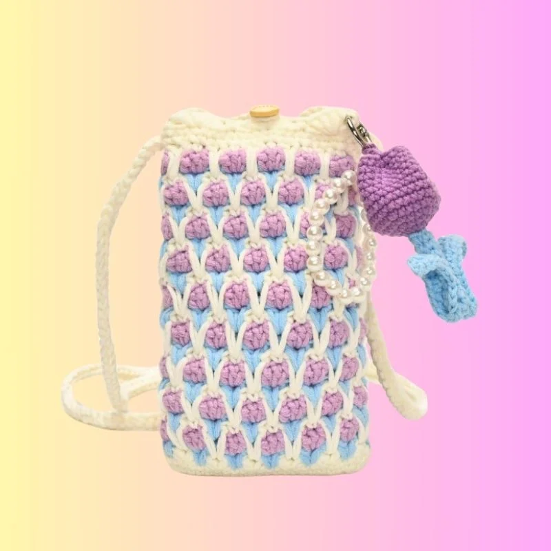 Lulusnow Handmade Purple Tulip Bag Phone Bag Gift For Her/Him/Kids/Christmas/Birthday/Easter Crochet Crossbody Bag