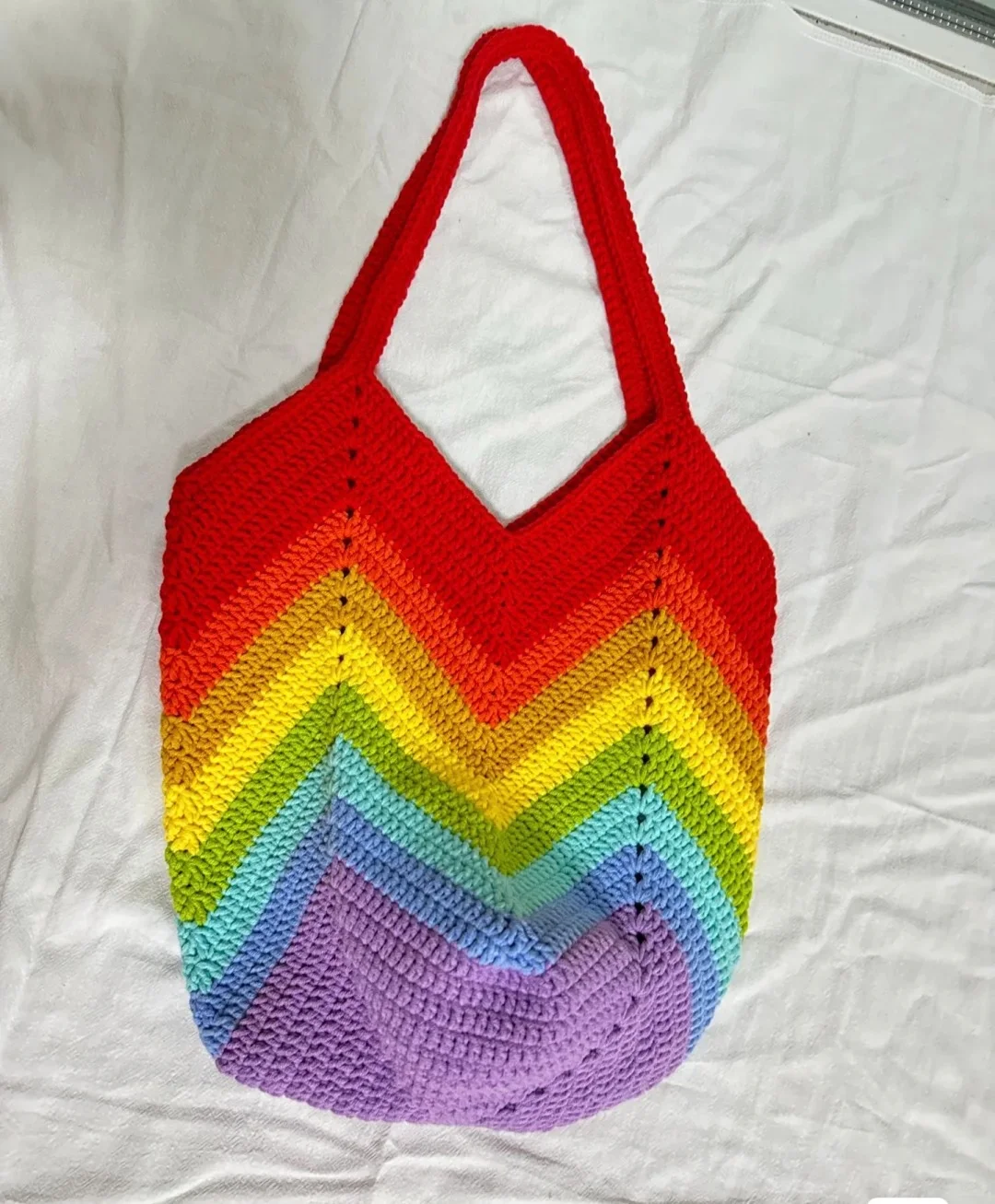 Lulusnow Handmade Rainbow Classic Stripe Casual Travel Beach Crochet Tote Bag Shoulder Bag