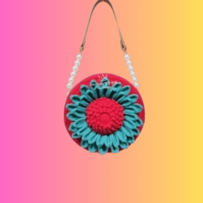 Lulusnow Handmade Red Green 3D Sunflower Bag Crochet HandBag[Gift:1PC Pearl Bag Strap]-Multiple colors to choose