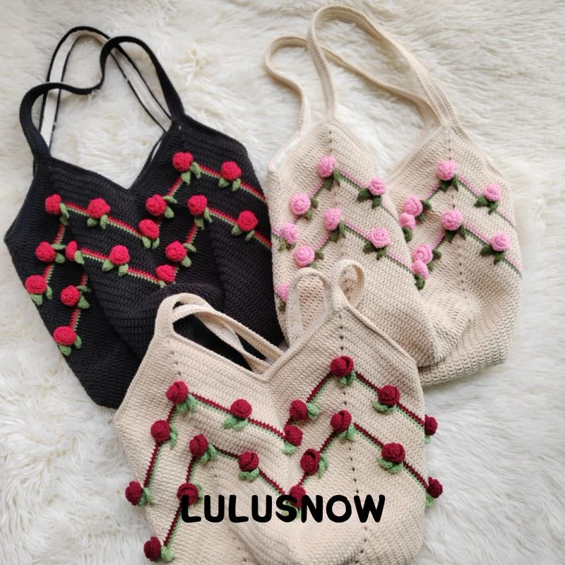 Lulusnow Handmade Red Mini Flora Casual Travel Beach Crochet Tote Bag Shoulder Bag  Gift Christmas/Valentine's/Easter/Mother's Day Gifts