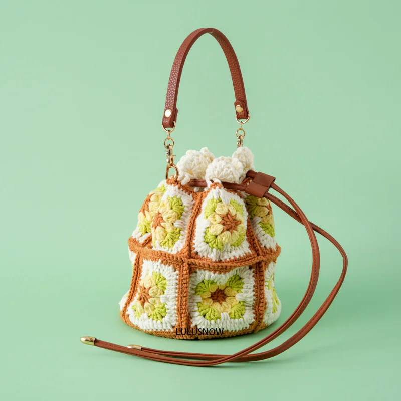 Lulusnow Handmade Spring Green Granny Square Gift Christmas Crochet Hand Bag