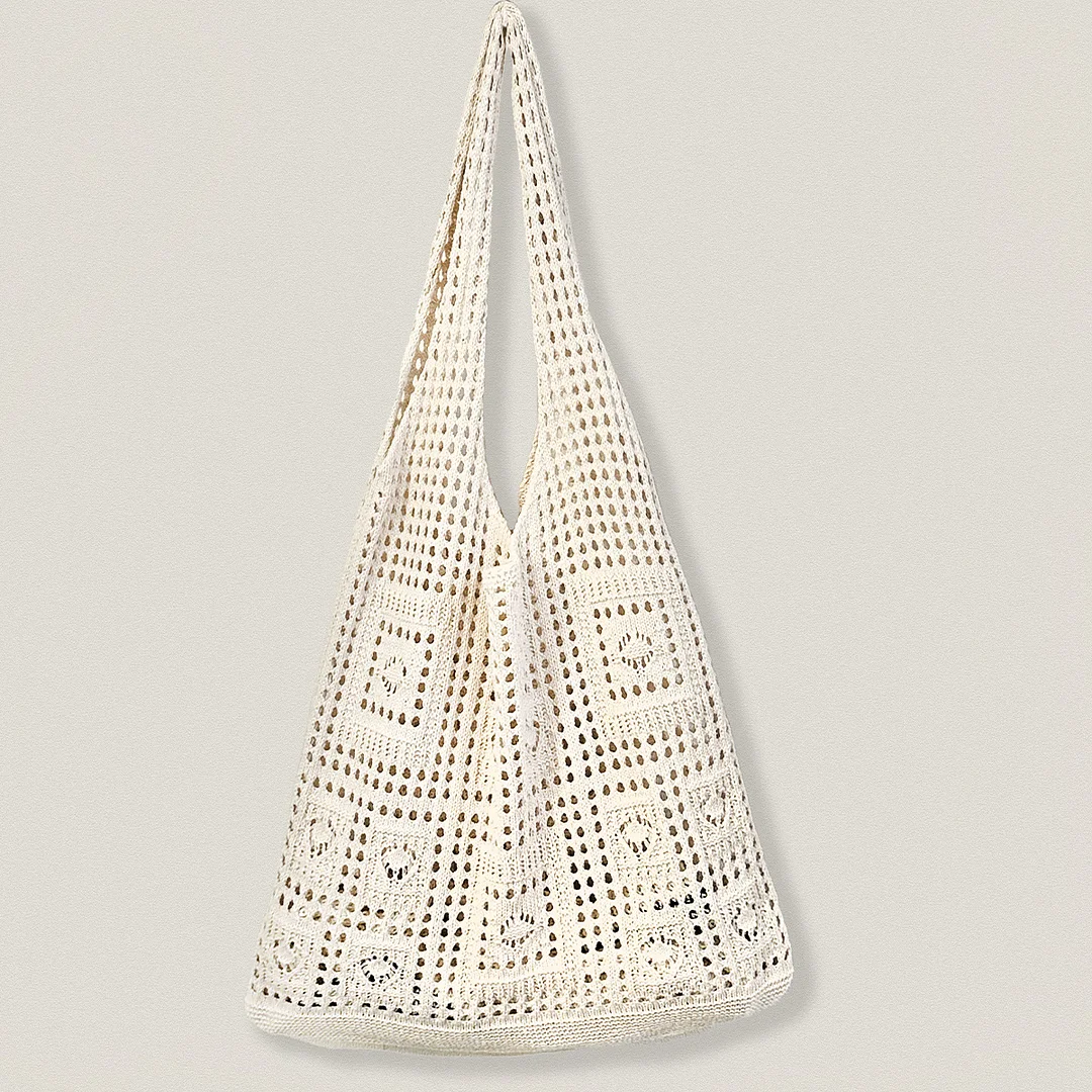 Lulusnow Handmade White Beach Summer Bag Vintage Foldable Handbag for Travel Crochet Shoulder Bag  Minimalist Lifestyle