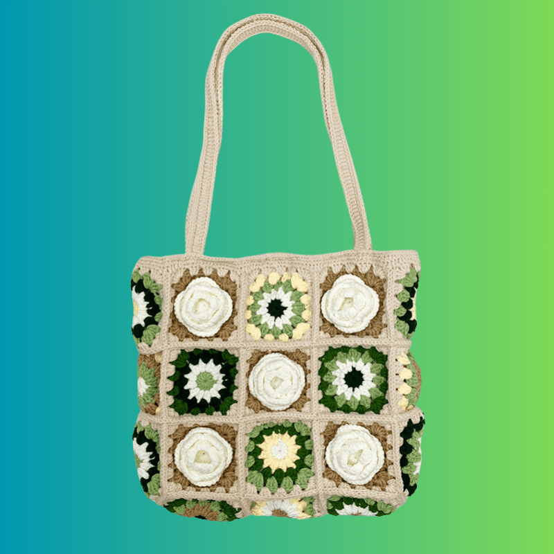Lulusnow Handmade White Beige 3D Camellia Bag 2023 Crochet Tote Bag Shoulder Bag, Amigurumi Flower Shoulder Bag, Handmade Bag For Girls Mother's Day Gifts