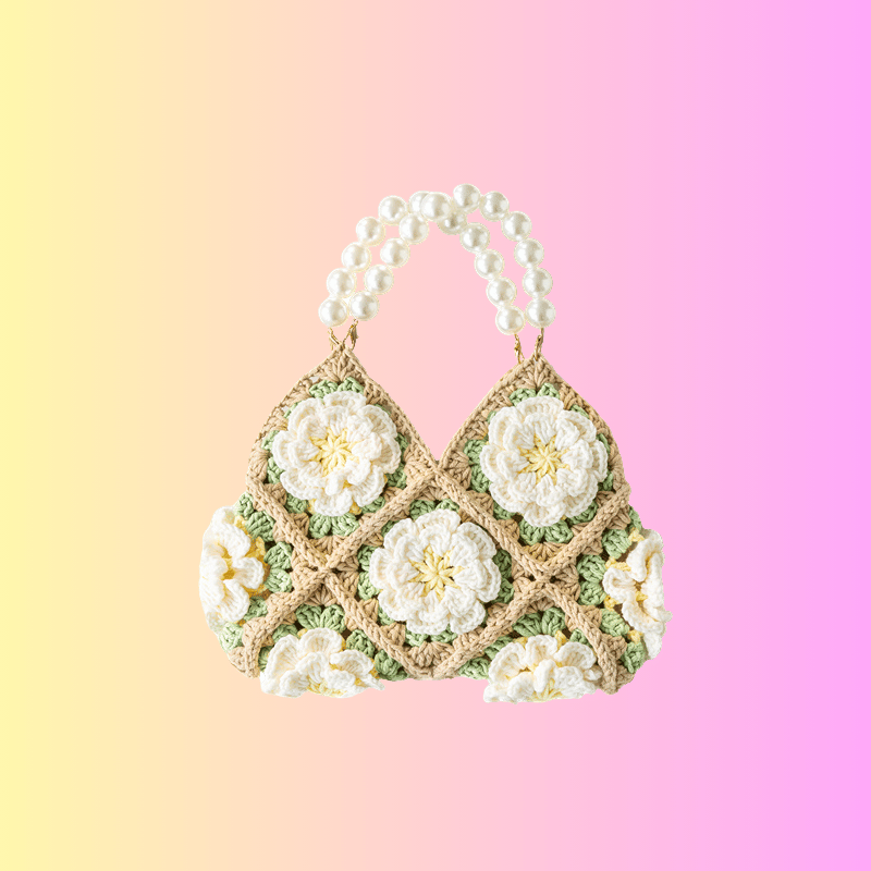 The design of this hand-crocheted bag is inspired by the classic granny lattice crocheting technique. Each grid is finely woven with a realistic 3D white rose. Delicate roses and pearl chain handles complement each other, showing an elegant and gentle style. Whether it is a gift for your mother, sister or friend, this bag can add unique charm and bring a romantic atmosphere like a garden.