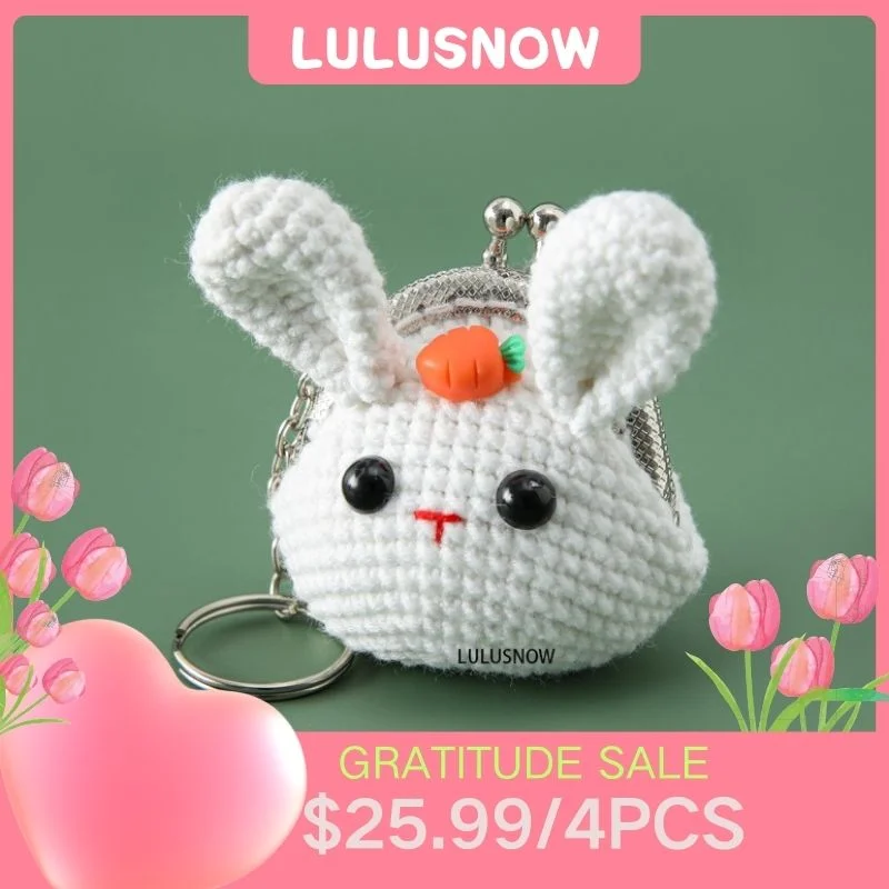 Lulusnow Handmade White Forest Animal Rabbit Easter Gift Crochet Coin Purse Keychain Bag Pendant Gift for Her/Friend/Kids