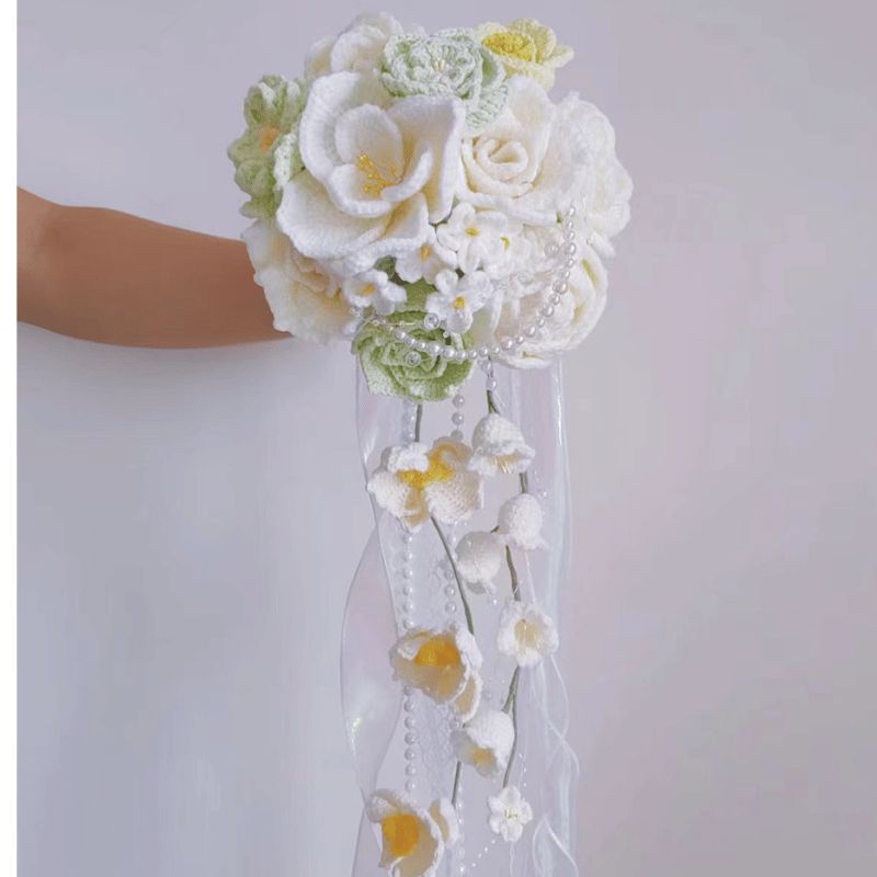 Lulusnow Handmade White Pearl Crochet Flower Bouquet Wedding/Forever Loving Girlfriend/Wife/Bride Gift